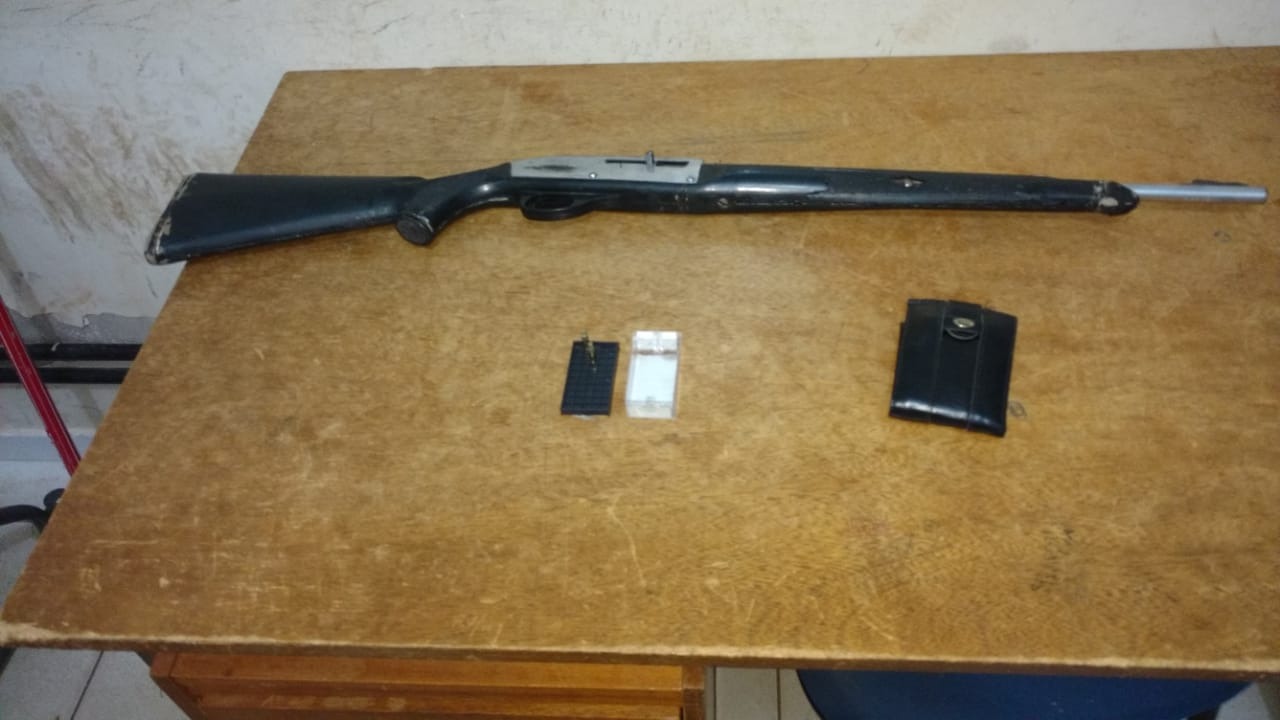 Sem saber como agir diante dos fatos, o patrão do suspeito pediu para os policiais o acompanhá-lo. O homem ainda relatou não ter conhecimento da arma, que segundo o vizinho seria uma Winchester Rossi CBC, calibre 22.