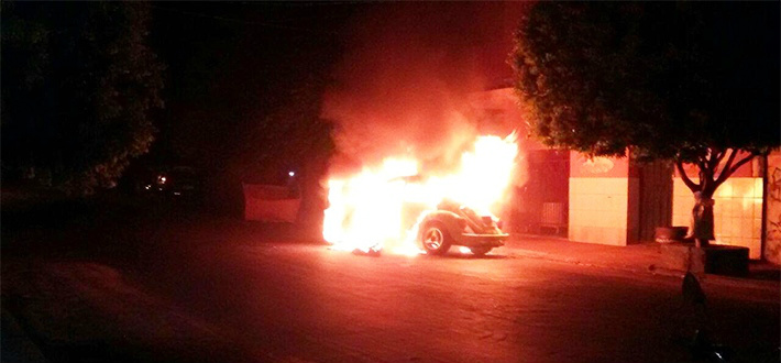 Um fusca pegou fogo ontem (24), por volta das 23h, em frente a uma pizzaria no bairro Santo Antônio, em Paranaíba.Os ocupantes do veículo saíram da pizzaria e o fusca começou a pegar fogo. O Corpo de Bombeiros foi chamado, mas ao chegar o veículo já estava praticamente consumido pelas chamas.