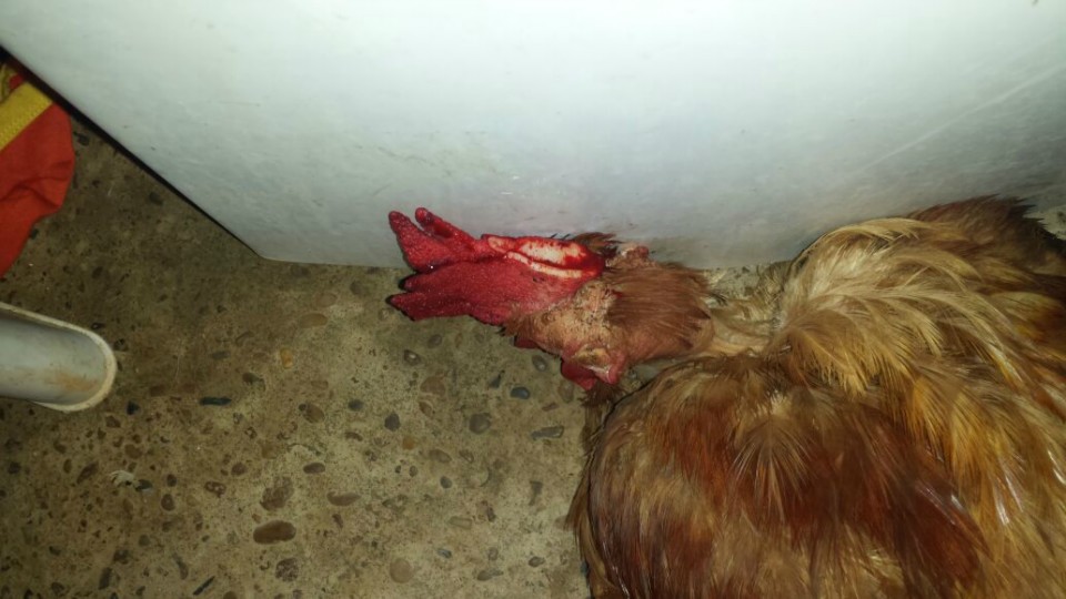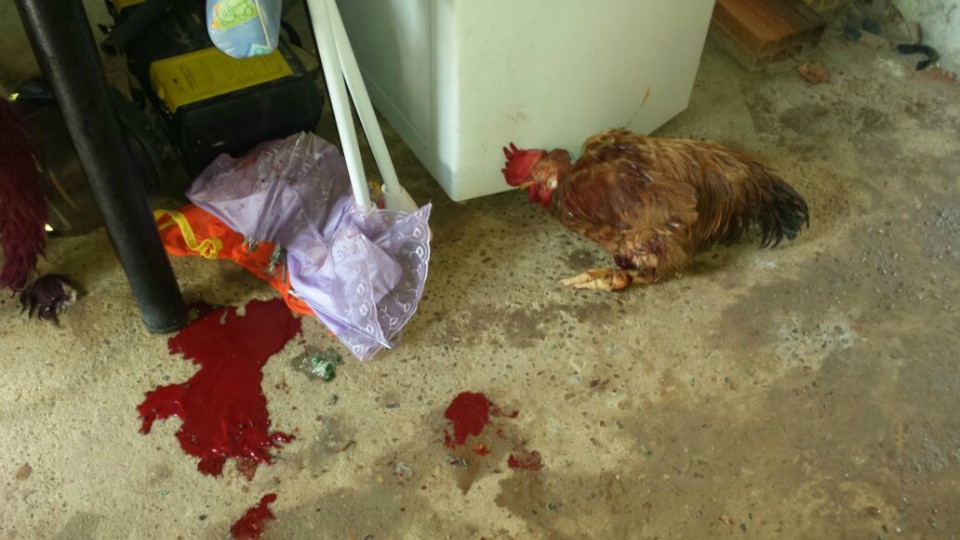 De acordo com os familiares, o galo foi sacrificado por conta dos ferimentos.