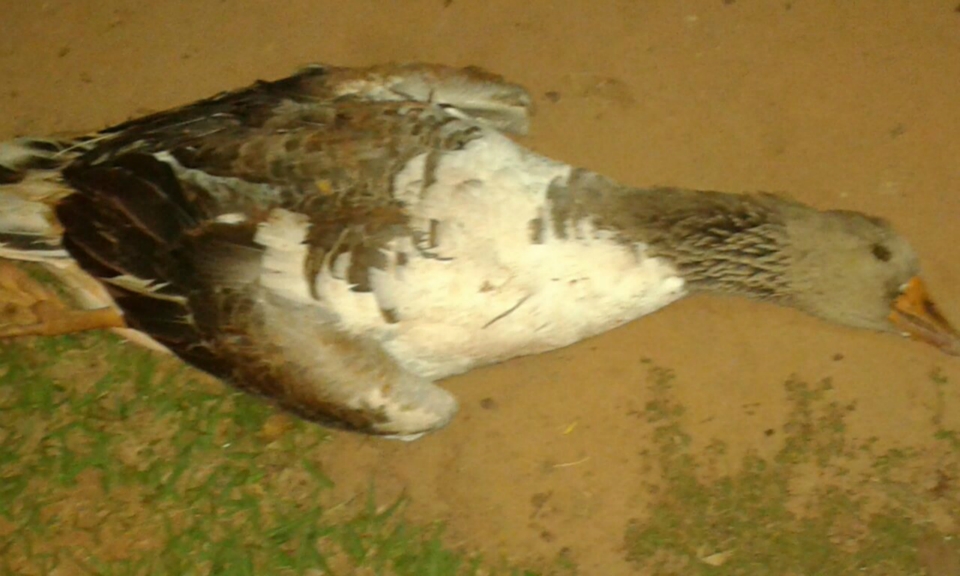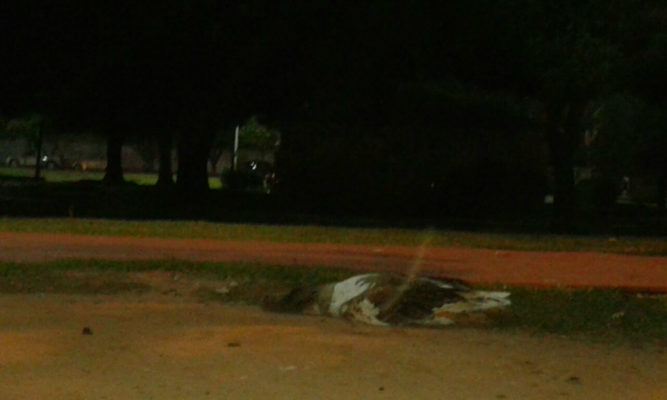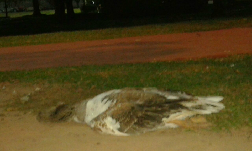Um ganso foi encontrado morto ontem à noite próximo a Sejuvel (Secretaria Municipal de Esporte, Juventude e Lazer) e do parquinho da Lagoa Maior.