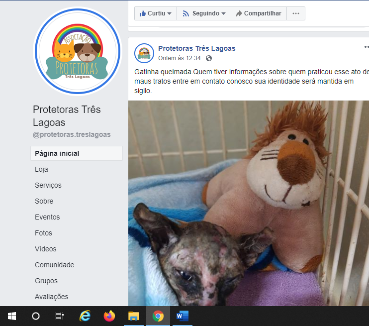 “Olha gente como está toda queimada. Ficou internada na MonAmi Veterinária. A Dra. Tamiris Lima não mede esforços para ajudar os animais. Está com muita dor a gatinha, tem partes que está muito inflamado os machucados. É difícil escrever tudo isso sem chorar… Meu Deus. Eu só não queria ter tanta raiva no coração quando penso em quem causou tudo isso. Não adianta, eu não sou a madre Tereza e jamais vou perdoar tanta maldade. Vou precisar de ajuda pra acertar a clínica. Vamos rezar para que ela sobreviva”.