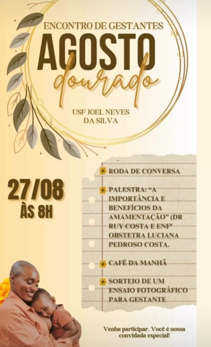 A ação acontece na sede da unidade de saúde, localizada na Rua Pelopides Gouvêia, 2137. A campanha Agosto Dourado reforça anualmente a importância do aleitamento como uma prática essencial para o desenvolvimento infantil e uma prioridade nas políticas públicas de saúde.