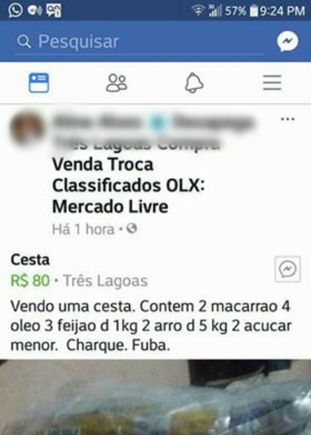 As redes sociais estão sendo usadas para a comercialização das cestas natalinas doadas pela Prefeitura de Três Lagoas. Somente ontem (21), momentos depois da entrega, alguns casos já foram descobertos. Uma postagem em uma página de compra e venda pelo Facebock oferece a cesta por R$ 180 reais.