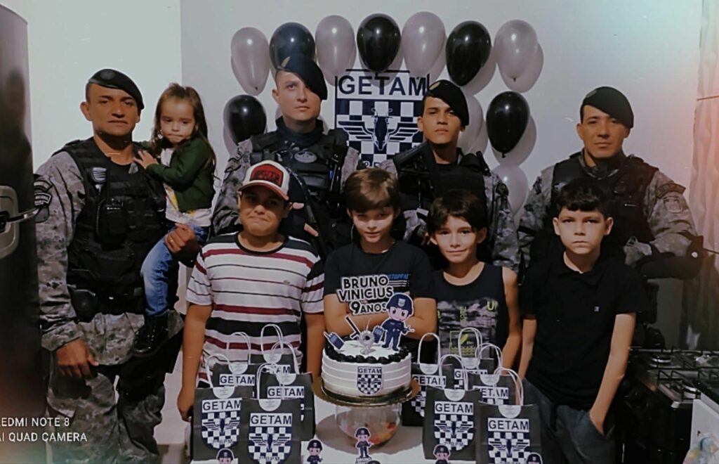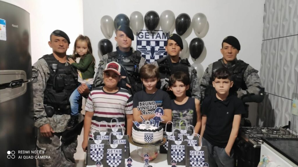 O menino Bruno Vinícius é morador do bairro Jupiá e foi neste bairro que comemorou o seu aniversário de nove anos, nesta última sexta-feira (13). A data sexta-feira 13 é repleta de superstições, onde muitos acreditam que a data significa azar. Porém, para o menino Bruno Vinícius foi um dia de muita sorte, uma vez que os seus heróis do Grupo Especial Tático de Motos (Getam) marcaram presença de surpresa na festa de aniversário.