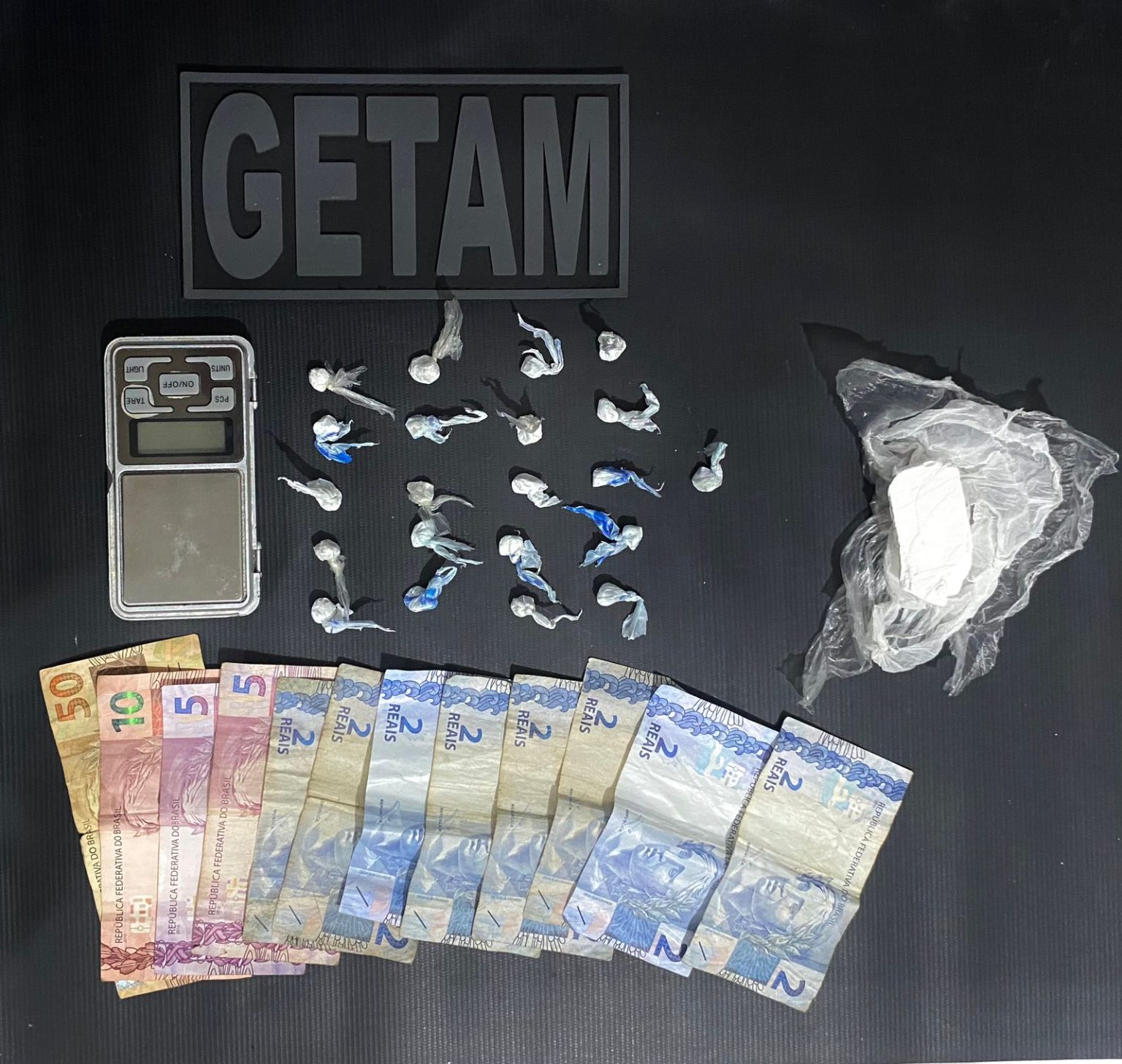Ainda durante a ocorrência, o detido informou que havia mais drogas em sua residência. Em diligência ao endereço indicado, os policiais apreenderam 36,4 gramas de cocaína e uma balança de precisão, reforçando a caracterização do tráfico.