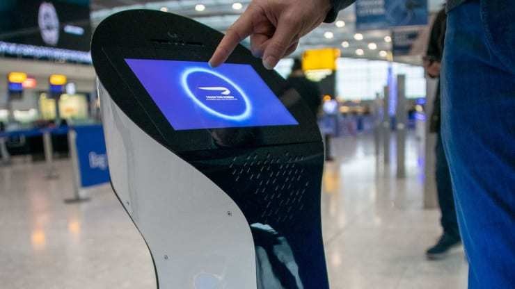 Os robôs no aeroporto de Heathrow podem se comunicar com os passageiros em vários idiomas e fornecer informações de voo em tempo real.