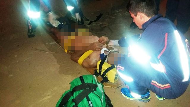 Devido a suspeita de fratura nos membros inferiores, uma equipe do Serviço de Atendimento Móvel de Urgência (SAMU) esteve no local e resgatou o homem até o Hospital Auxiliadora com suspeitas de fraturas nas pernas.
