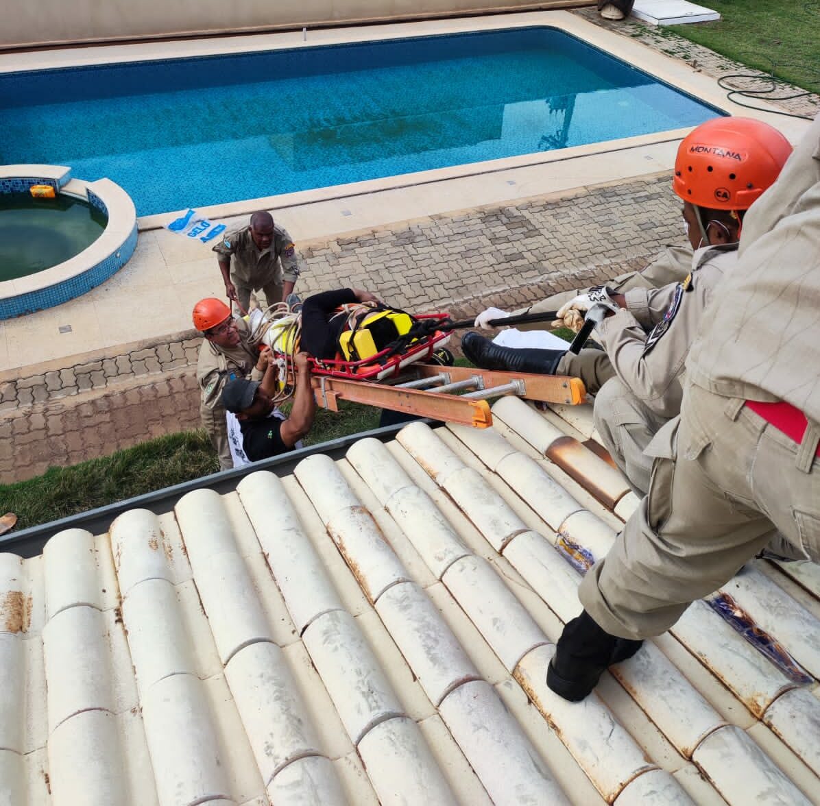Homem cai de telhado e é socorrido pelo Corpo de Bombeiros no Jardim Alvorada