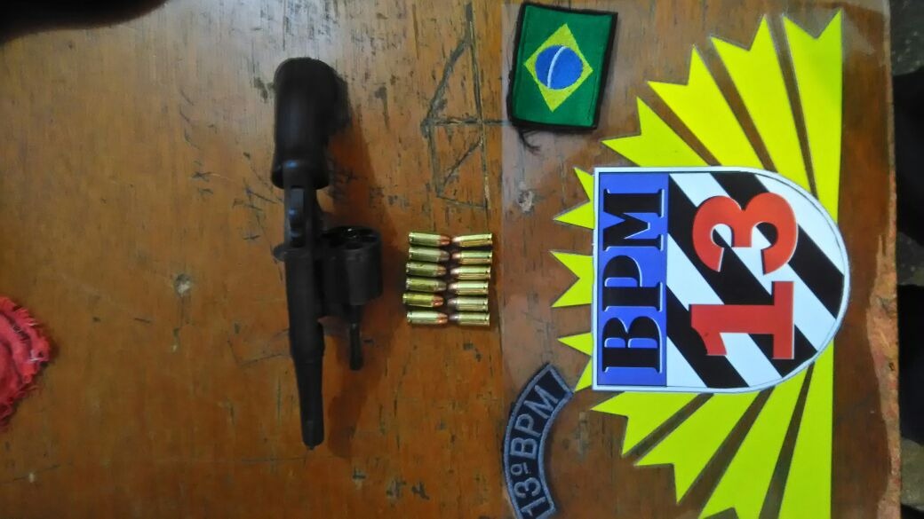 Ao chegar, a guarnição encontrou a arma escondida próxima ao telhado da casa e, localizaram ainda 12 munições intactas da arma, que tem o calibre 32.