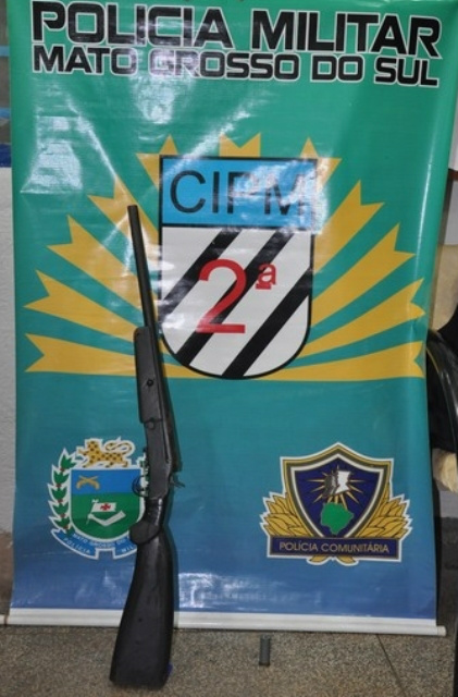 A arma foi apreendida pela PM juntamente com um cartucho de munição calibre .12 intacto.