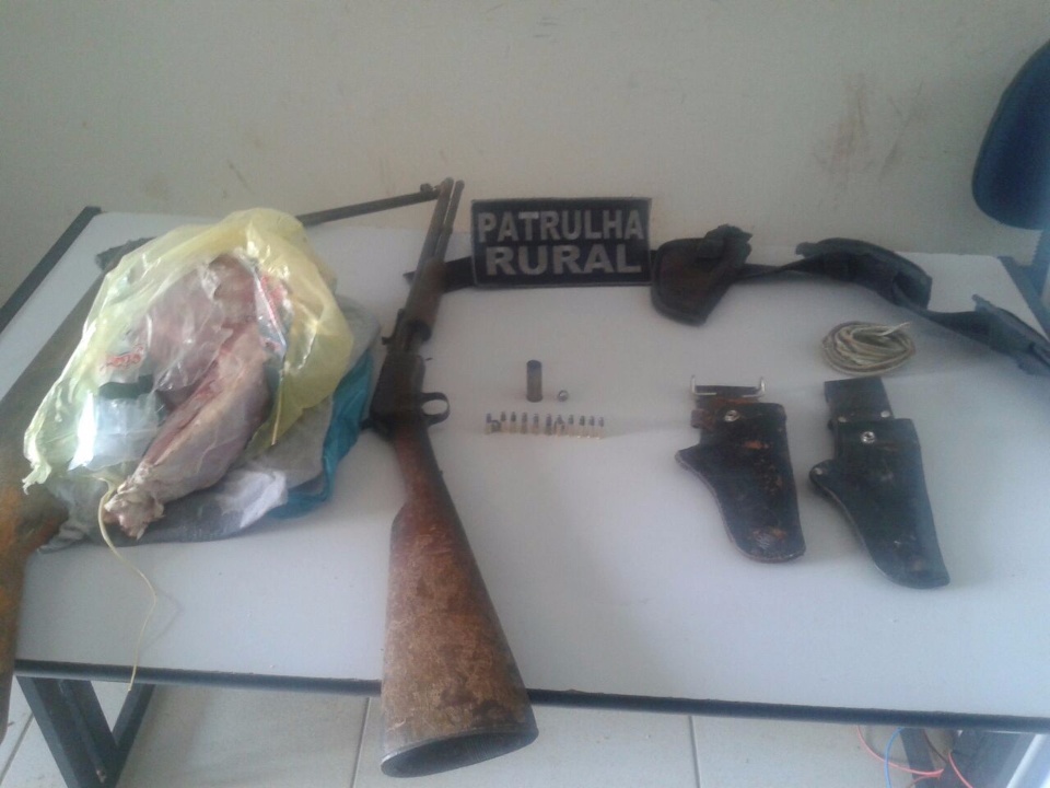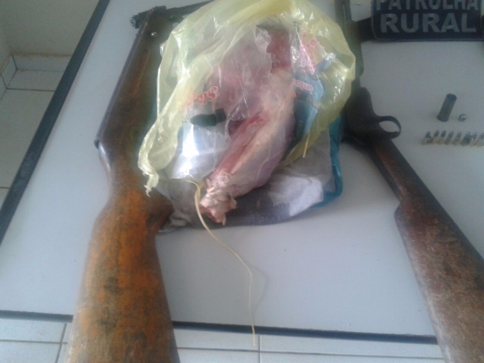 Conforme a Polícia, após denuncias uma equipe da PM sendo a Patrulha Rural e o outra da P2, se deslocaram até o endereço. A entrada dos militares foi franqueada pelo suspeito, e depois de vistorias foram encontradas duas armas tipo espingarda calibre 22, três coldres de arma de fogo, 21 munições intactas, cerca de 2 Kg de carne de animal silvestre e ainda uma motocicleta produto oriundo de roubo na cidade de Selvíria, distante a 76 quilômetros de Três Lagoas.