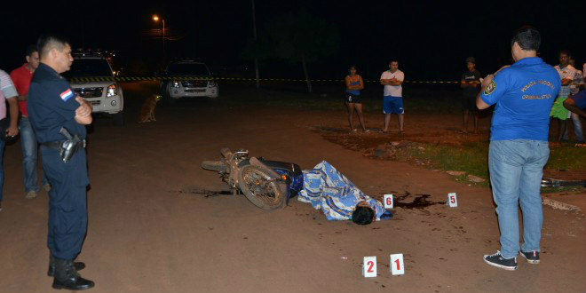Zacarias Britez Garcete, 23, foi executado com seis tiros de pistola na madrugada de sábado (09) quando transitava a bordo de uma motocicleta marca Kenton 110cc, pela rua Rio Ypane esquina com a Paraná, no bairro São Carlos, em Pedro Juan Caballero.