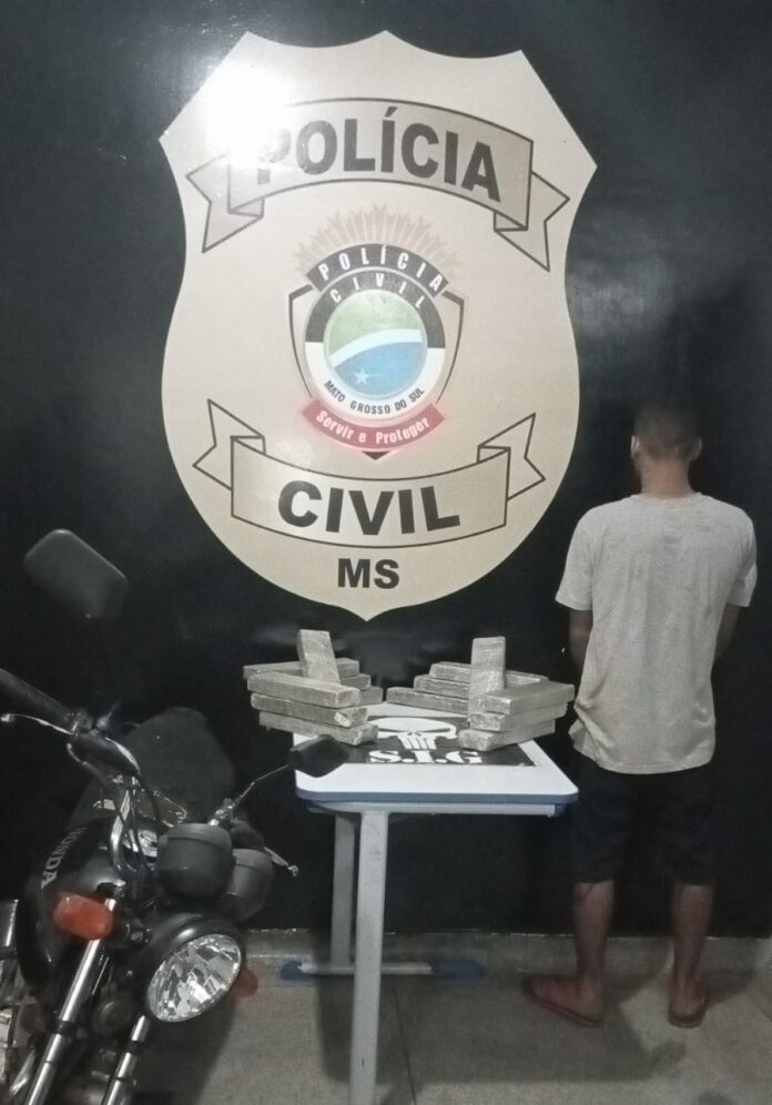 Homem é flagrado pela Polícia Civil de Água Clara desenterrando 14 tabletes de maconha em boca de fumo