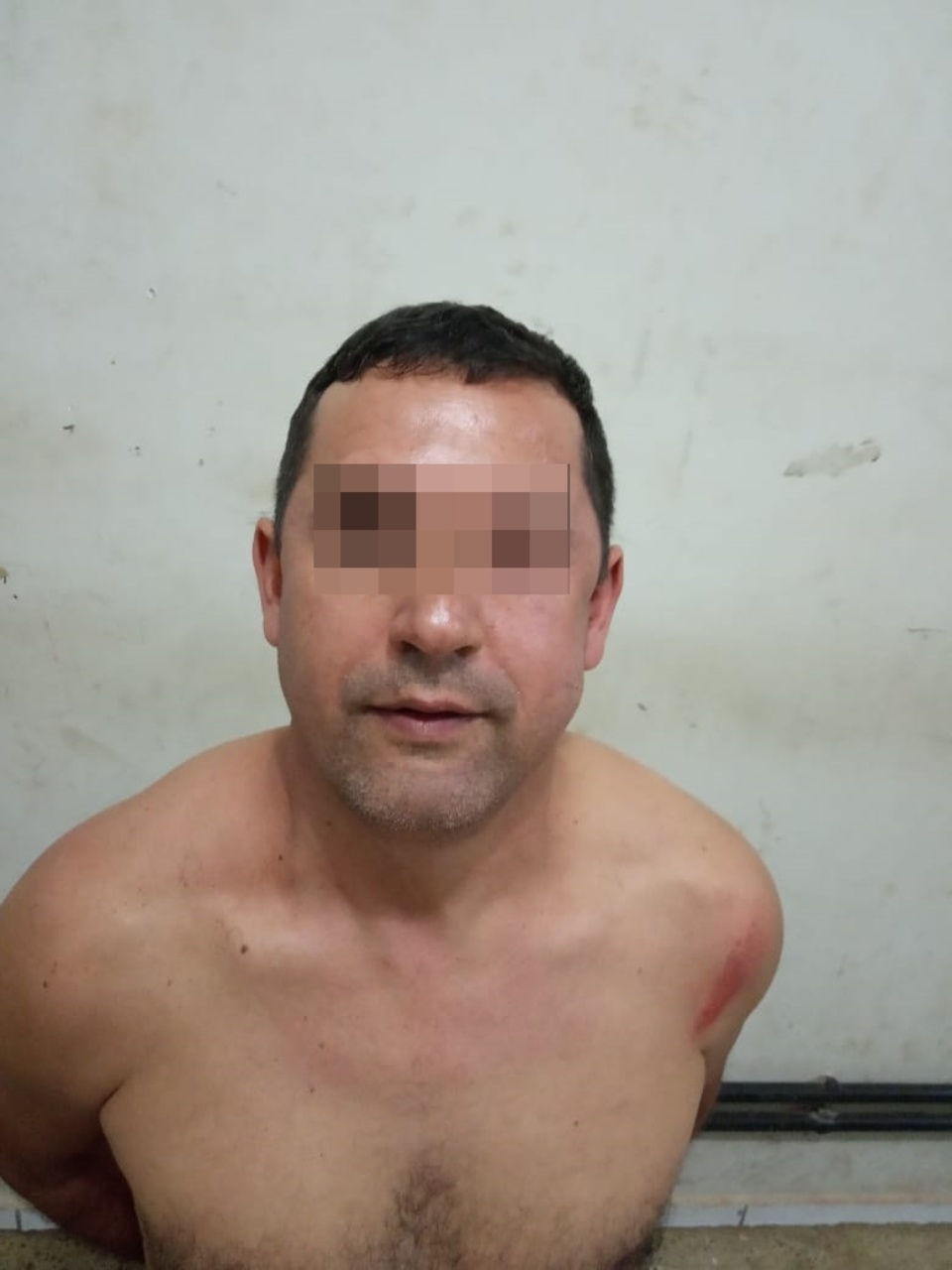 Com a persistência de U.M.A., os policiais precisaram invadir o quintal da casa onde o autor permanecia trancado, cortando o cadeado para prendê-lo. E ao ser abordado para se posicionar para revista, o homem fugiu para o interior da casa e se trancou, sendo necessário ainda arrombar a porta da residência.
