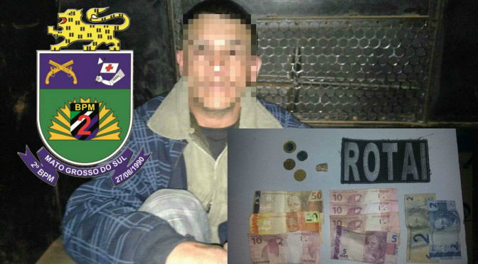 Com o autor foi encontrada a quantia de R$ 89,00 (Oitenta e nove Reais) em notas diversas, segundo o acusado, provenientes da venda de drogas. Foi realizada uma varredura pelo local e encontrado o objeto lançado anteriormente, tratando-se de uma pedra, aparentando ser crack, pesando 3.0g.
