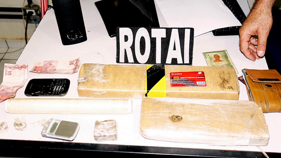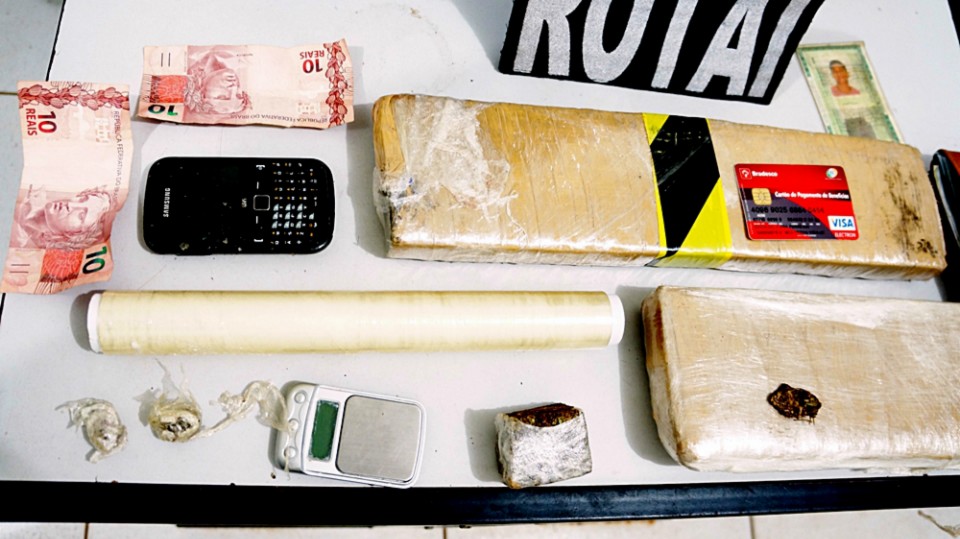 Ao chegar na residência, os policias encontraram dois tabletes de maconha com aproximadamente dois quilos, alem de diversas trouxinhas, dinheiro, um rolo de papel filme e uma balança de precisão, características que apontam para um ponto de vendas no local.