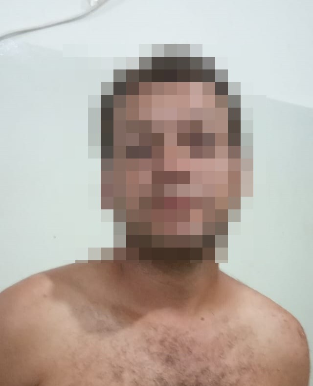 Ele foi encontrado em um corredor, foi detido e imobilizado com uso de algemas. Com o homem foi encontrado uma faca. Segundo ele, a mulher é sua amasia, porém, a vítima nega a afirmação, ela o conhece por ser irmão de uma amiga.