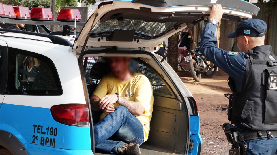 A equipe da Polícia Militar compareceu ao local e encaminhou o autor à 1ª Delegacia de Polícia Civil.