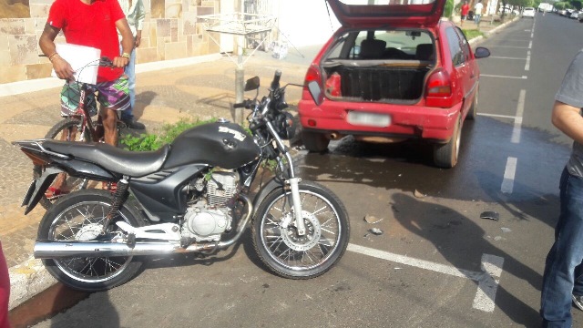 Também nesta manhã, um veículo Fiat Palio seguia pela rua Paranaíba sentido bairro/centro quando uma motocicleta Honda Titan de cor prata atravessou a pista, preferencial na rua João Silva.