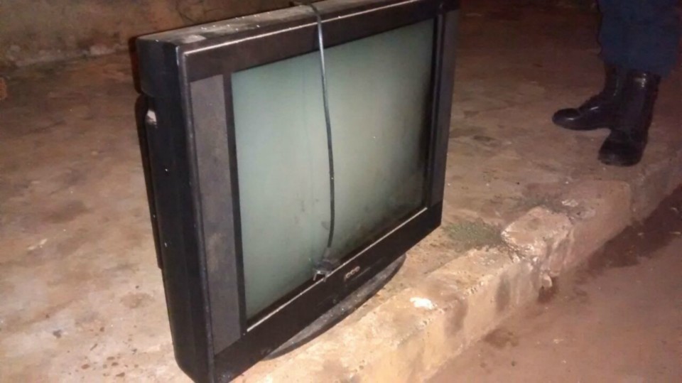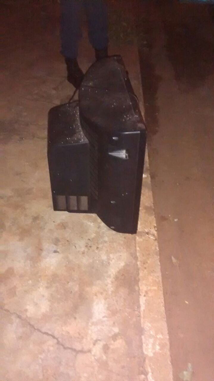 Segundo informações o suspeito estaria carregando uma televisão nos braços quando avistou a viatura da Polícia Militar, abandonando o produto do furto e se evadindo do local.
