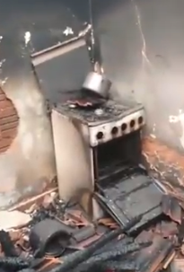 A PM retornou na casa, viu as chamas altas e o autor fugindo, mas em primeiro momento decidiu tirar as vítimas de dentro da residência. Um vizinho pegou uma mangueira e tentou ajudar a apagar as chamas. Os policiais também retiraram um botijão da casa, mas não houve tempo de salvar nada. A casa ficou totalmente destruída.