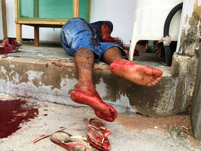 Desesperado, o homem saiu correndo pela avenida e procurou abrigo em uma madeireira na localidade. Uma equipe do Serviço de Atendimento Móvel de Urgência (SAMU) foi ao local e resgatou o jovem ao Hospital Auxiliadora para cuidados médicos e apesar dos graves ferimentos no pelo corpo e braço direito, não corre risco de morte.