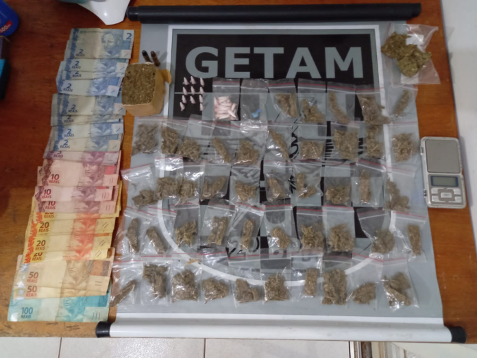 Nesta sexta-feira às 16h50, após denúncia recebida pela Polícia Militar, relata que um homem de aproximadamente 29 anos e com fixadores metálicos na perna direita está comercializando drogas no condomínio onde mora. Consta que o homem esconde a droga no padrão de energia e dentro de sua residência, e que está recebendo produtos em troca de drogas. De posse dessas informações, a PM foi até o endereço para verificar se procedia a denúncia, que ao chegar ao local foi visualizado um homem com as caracterizas denunciadas em frente ao endereço. De imediato foi realizada uma abordagem policial, sendo o autor identificado como A H DE S N, que durante uma busca pessoal foi encontrada pelo SD R três porções de uma substância semelhante à maconha nos bolsos do autor. Durante uma busca no perímetro foram encontradas no padrão de energia próximo ao autor mais 22 porções da mesma substância e embalagem que estava com ele, além de 25 porções de uma substância análoga a cocaína e duas munições calibre 38 e um caderno com anotações das vendas das substâncias, que quando visualizou que a equipe encontrou as substâncias escondidas assumiu que é dele. Perguntado ao autor se havia mais substâncias em sua residência, respondeu “não muito, mas tem sim”. Sendo assim o autor se dispôs a entregar o restante que estava dentro de sua residência, sendo mais 20 porções de maconha com as mesmas embalagens encontradas no padrão, dois tabletes de maconha totalizando 149 gramas e uma porção de crack de 0,6 gramas. Durante o acompanhamento do autor para pegar o restante das substâncias, foi visualizado logo na entrada da residência uma TV de 40 polegadas no chão juntamente com uma furadeira e quatro celulares, sendo capturadas para apresentação na delegacia, tendo em vista que na denúncia relata que o autor aceita produtos em troca de drogas. Diante dos fatos foi elaborado um B.O., sendo entregue na DEPAC juntamente com os produtos, substâncias e o autor, sem lesão corporal. Compareceu na sala de elaboração de ocorrências da Polícia Militar o senhor LUIZ ANTONIO DA SILVA MARTINS, que se identificou como advogado apresentando sua funcional da OAB com inscrição n 15626.
