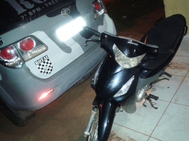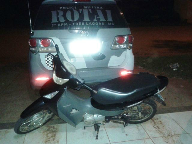 Após denúncias anônimas, uma equipe da Ronda Ostensivas e Táticas do Interior (ROTAI) apreendeu na noite desta segunda-feira (28) uma motocicleta Honda Biz de cor preta de placa HSR 6330 que estava abandonada em um terreno baldio na Rua Elias Mansur, ao lado da Escola Estadual do bairro Parque São Carlos.