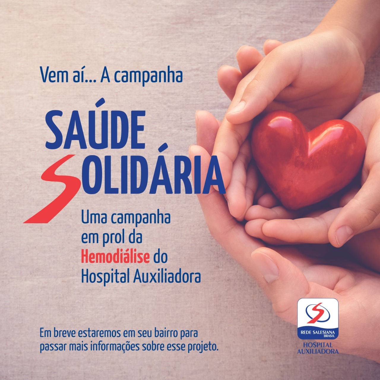O Hospital Auxiliadora lança na próxima semana uma campanha em prol a Hemodiálise. Durante os próximos dias nossos mensageiros estarão visitando alguns bairros de Três Lagoas e o primeiro será o Interlagos. Vamos participar dessa Corrente do Bem!