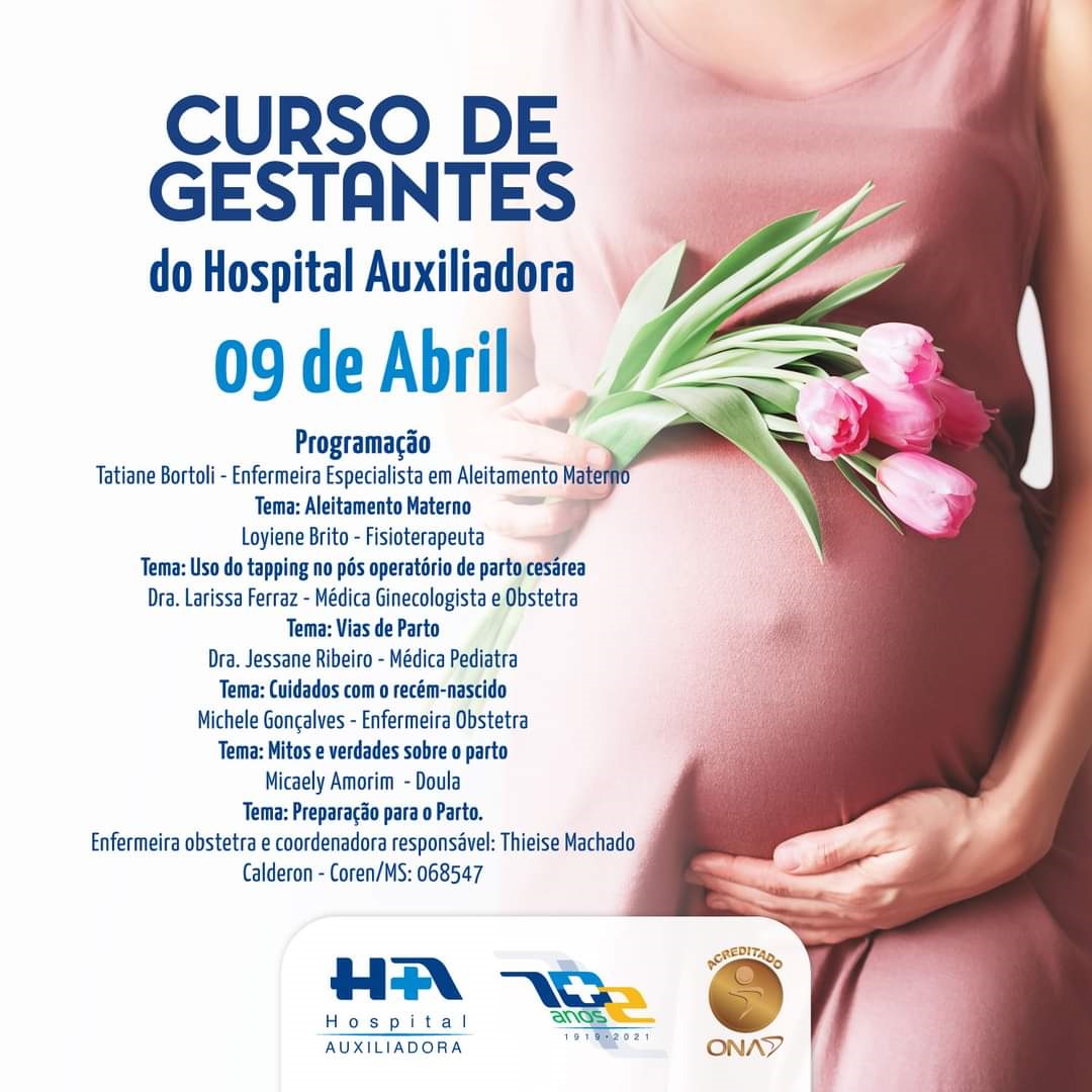 TRÊS LAGOAS (MS) – Buscando promover a saúde das gestantes, tanto no pré-operatório como no pós-operatório, o Hospital Auxiliadora vai realizar um curso de gestantes, no próximo sábado (9), a partir das 7h, com previsão de término ao meio-dia.