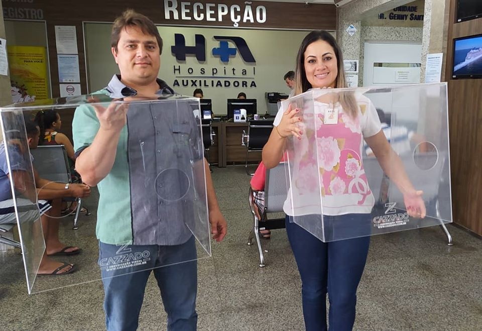 A terceira doação foi de uma Empresa de Comunicação Visual, a Cazzado, que fez a doação de duas cúpulas de procedimentos para pacientes positivos ou suspeitos da Covid-19. Este material recebido irá garantir maior segurança para a equipe que está atuando na linha de frente.