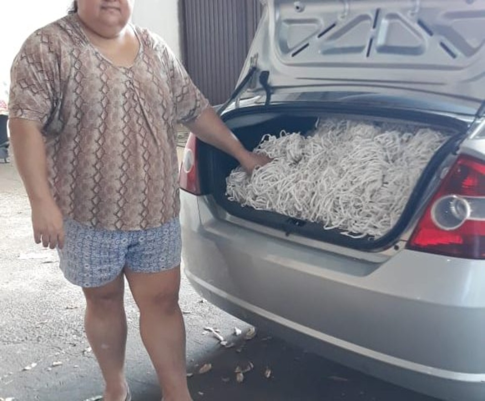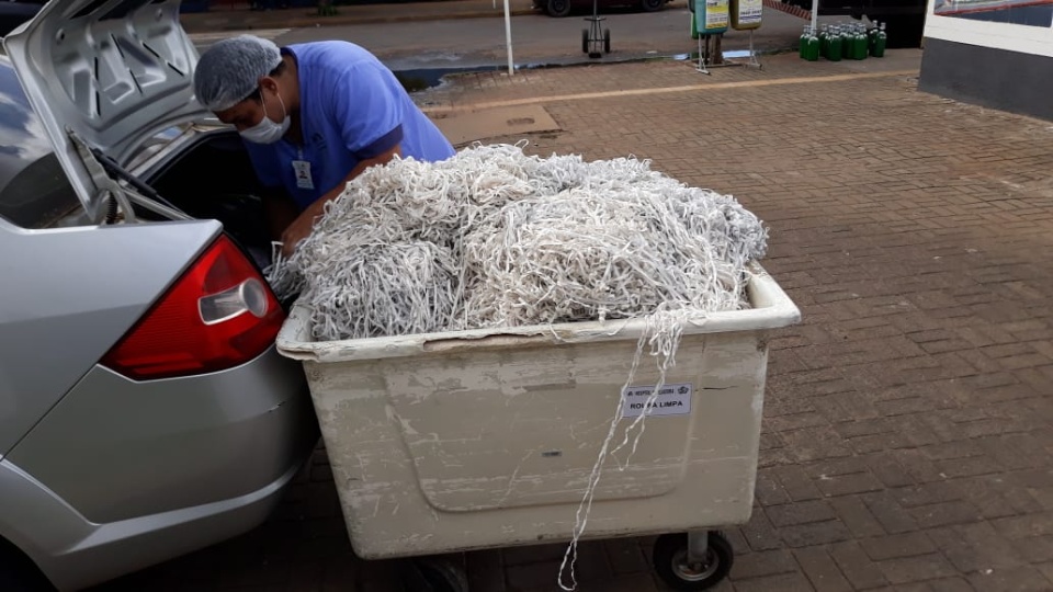 A primeira doação, foi recebida pela Empresa Brás Móveis usados, a proprietária da loja Eliane Batista Pomboni, fez a doação de 76kg de elástico, que irá dar suporte e auxíliar na produção de capotes, aventais, máscaras e roupas privativas ao servidores.