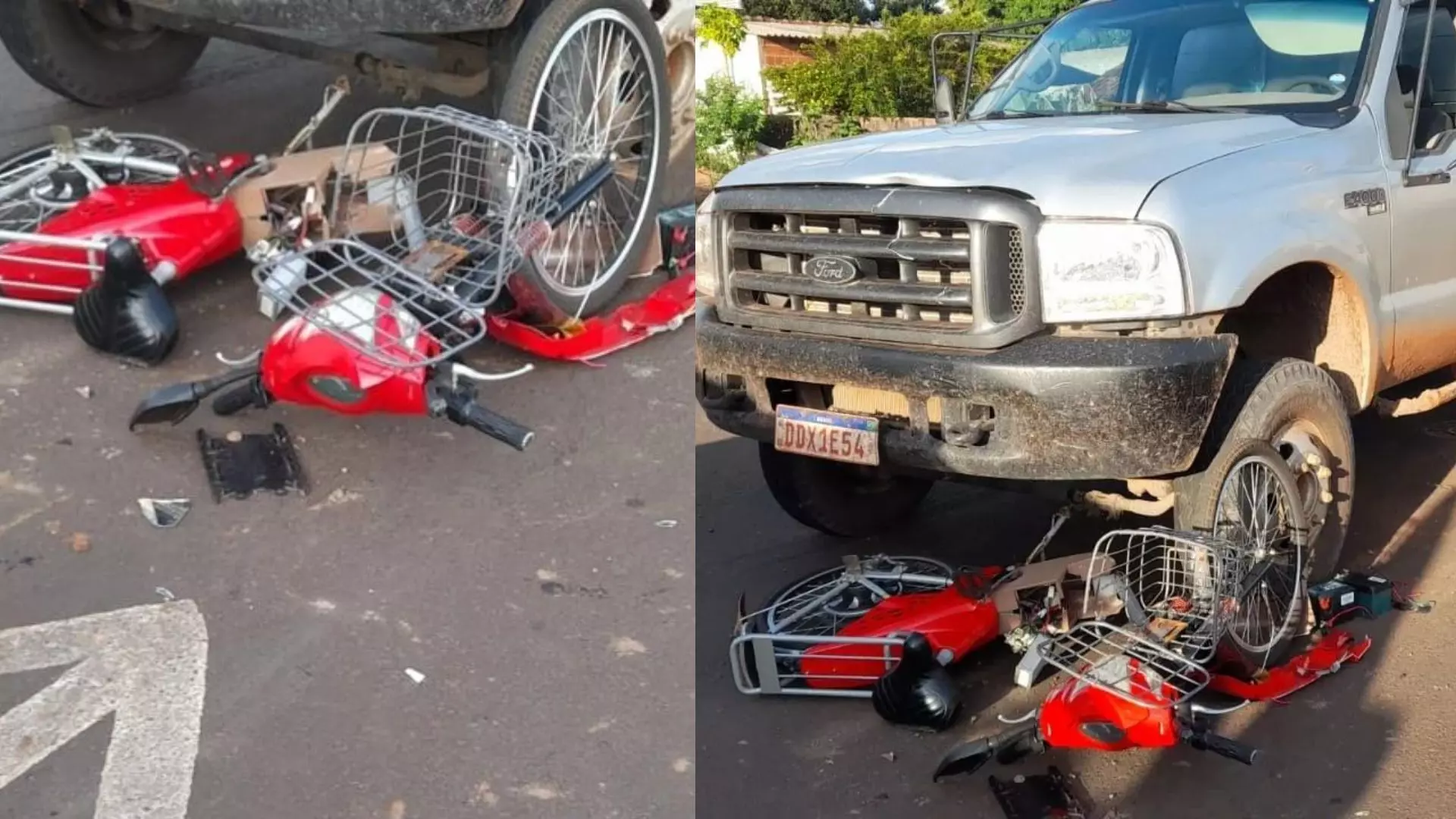 Idosa morre a caminho de hospital após acidente entre bicicleta elétrica e caminhonete em MS