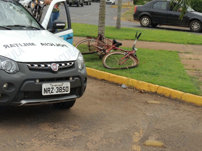 Na tarde desta sexta-feira (02) por volta das 13h05, um idoso de 74 anos trafegava com sua bicicleta pela Rua Duque de Caxias, quando ao cruzar o canteiro central da Avenida Capitão Olinto Mancini o mesmo não teria olhado para o lado direito, momento esse em que um veículo Kia de cor branco veio a colidir com o ciclista.