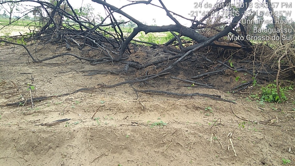 A Polícia Militar Ambiental identificou uma extração ilegal de madeira e incêndio da área degradada sem licença ambiental.