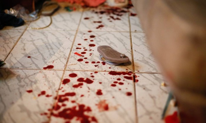 Em um dos quartos da casa, foram encontrados um machado e um pé de cabra, além de muitas manchas de sangue em diversos pontos do imóvel.