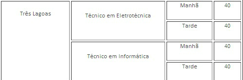 Inscrições – Deverão ser realizadas pela Central de Seleção do IFMS entre 24 de setembro e 20 de outubro. Para fazer a inscrição, o candidato deve ter Cadastro de Pessoa Física (CPF) em seu nome.