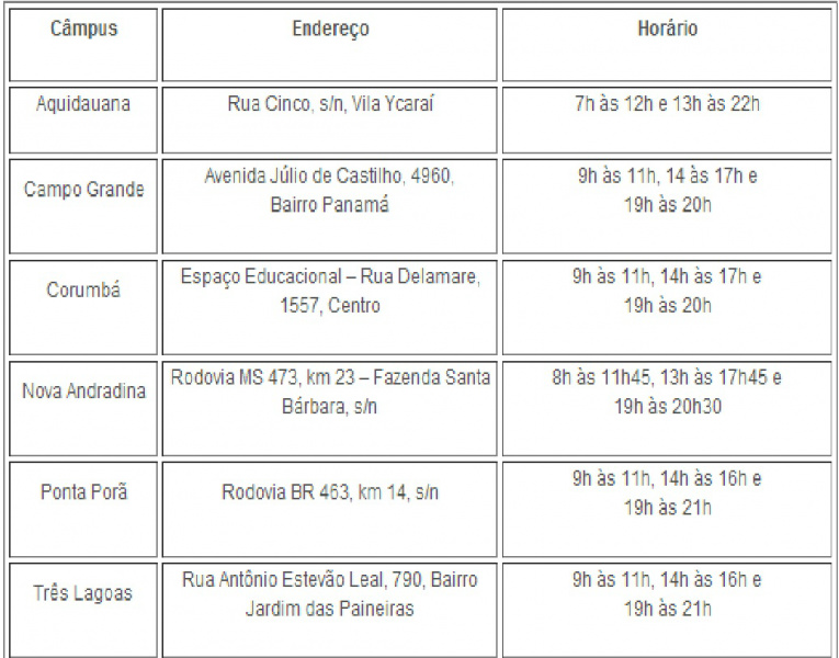A relação dos convocados está disponível na página do Sistema de Seleção Unificada (Sisu), www.sisu.mec.gov.br, e no site do IFMS, www.ifms.edu.br/centraldeselecao.