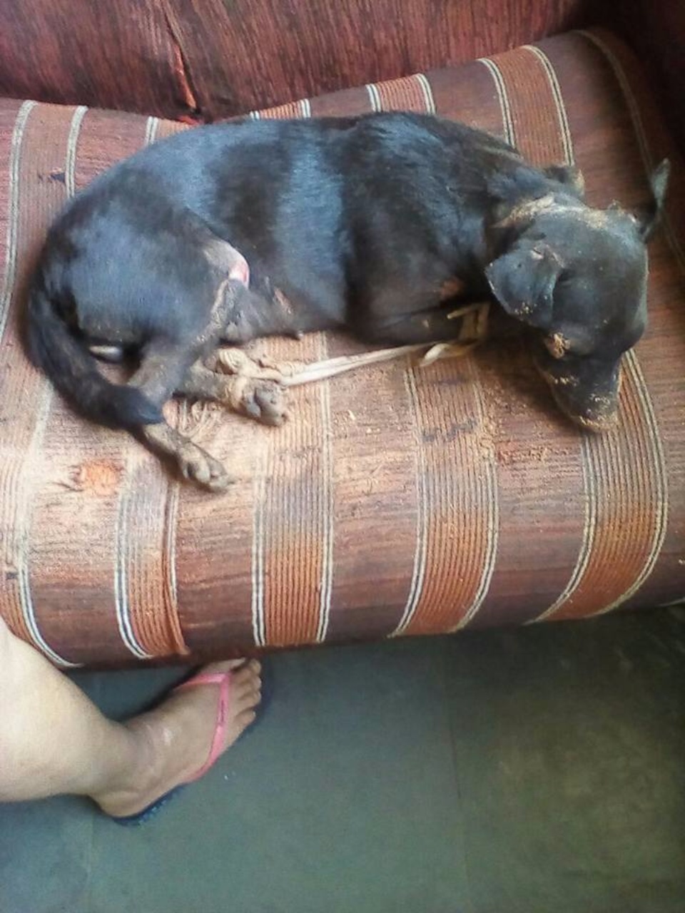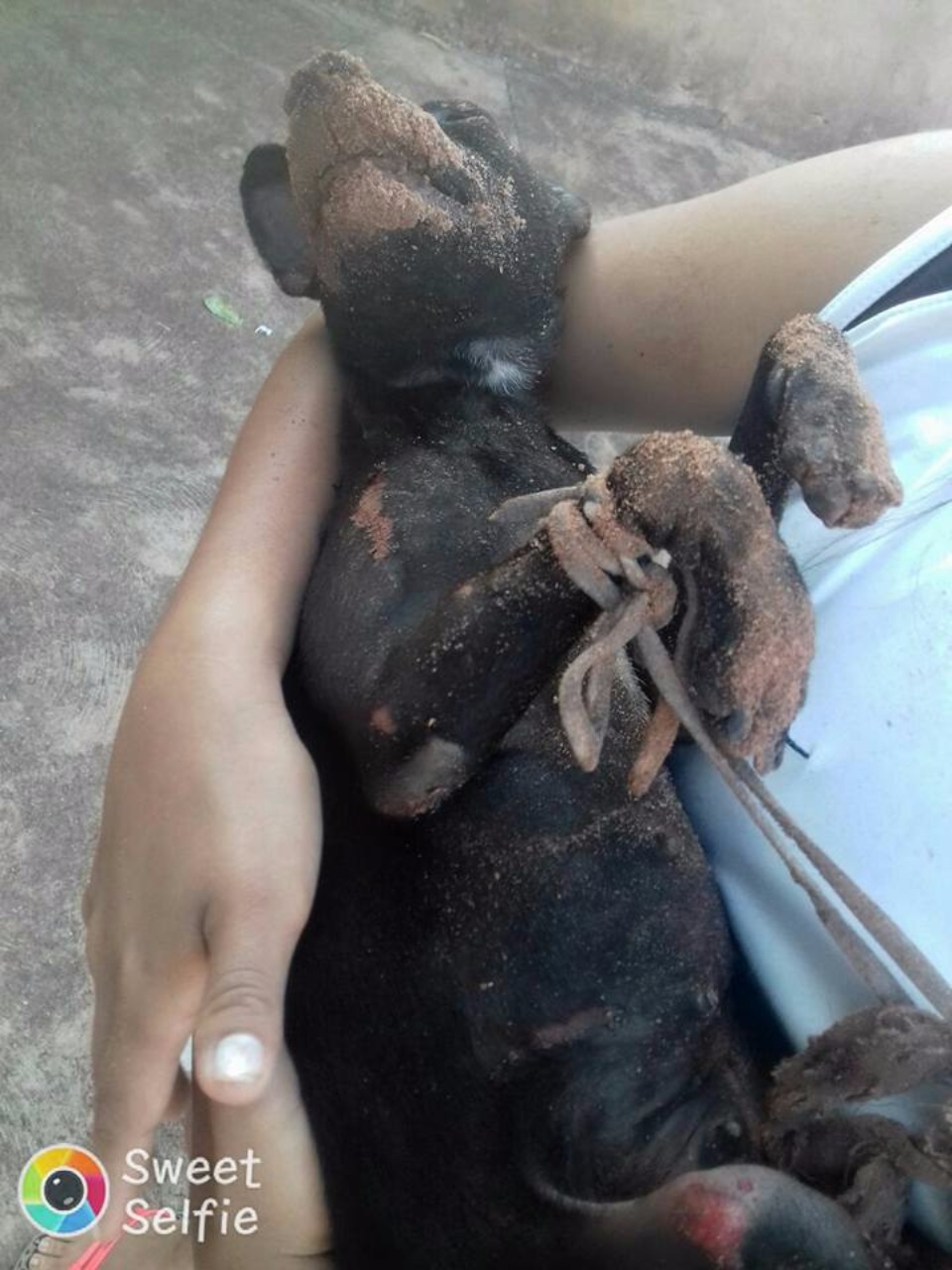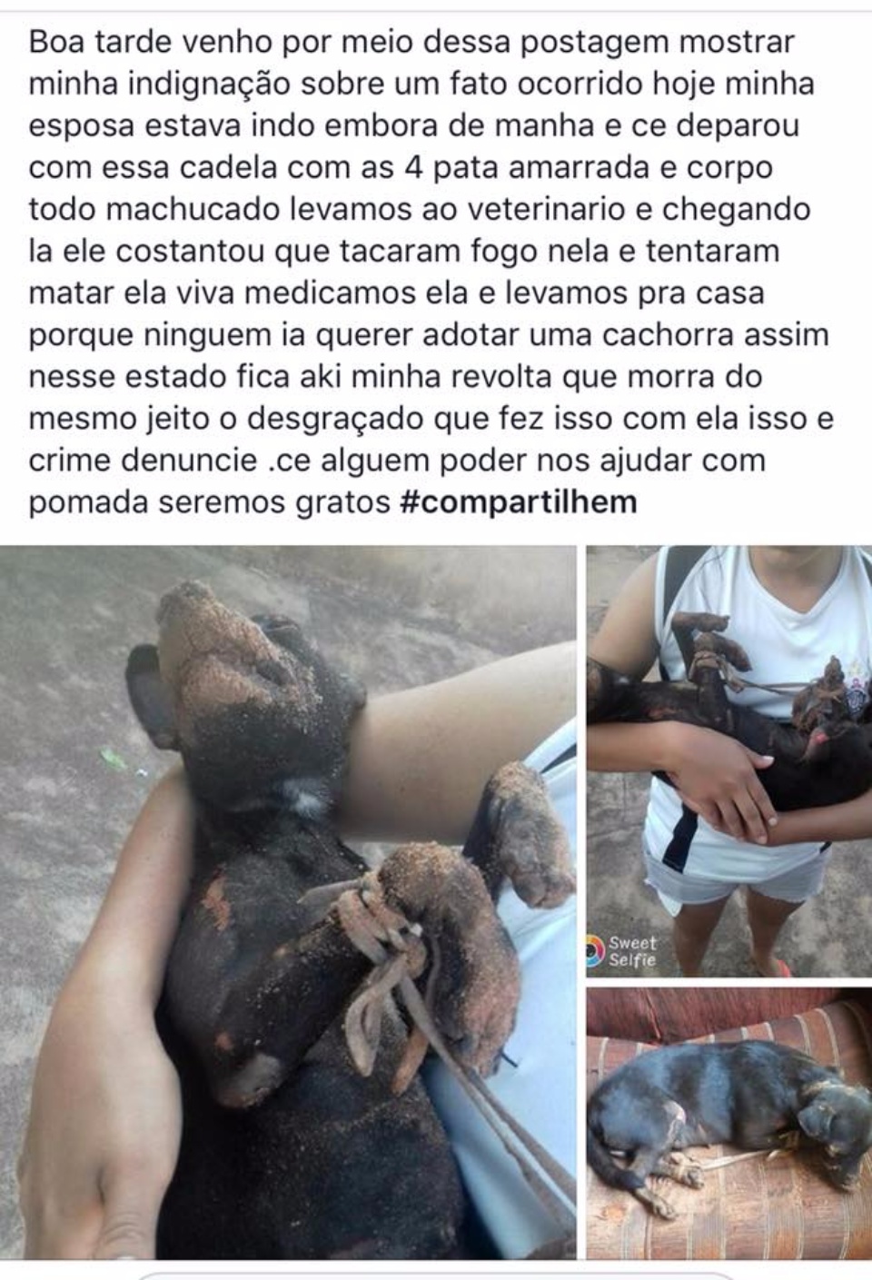 A foto e o texto foram postados no grupo OLX Três Lagoas por Leonardo Souza, que em seu relato contou que sua esposa saiu de casa logo pela manhã e encontrou o animal naquele estado. O casal levou a cadela até uma clinica veterinária onde foi medicada, mas não resistiu aos ferimentos e morreu.