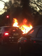 Um veículo Palio Weekend, pegou fogo, no final da tarde desta terça-feira (4), na Rua Joaquim Murtinho, próximo ao Supermercado Extra, no Bairro Tiradentes, em Campo Grande. De longe era possível ver as chamas, que consumiram todo o carro.