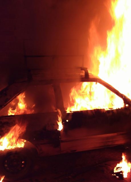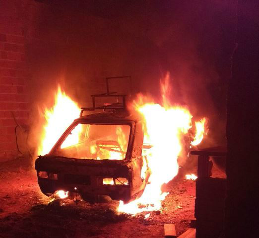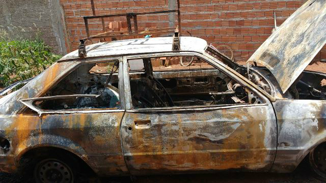 No local, os Bombeiros foram informados por E.B.S. (43 anos), que seu veículo Ford Escort GL de cor branca, placas de Castilho (SP), estava guardado na garagem de sua residência, e acordou com o veiculo em chamas.