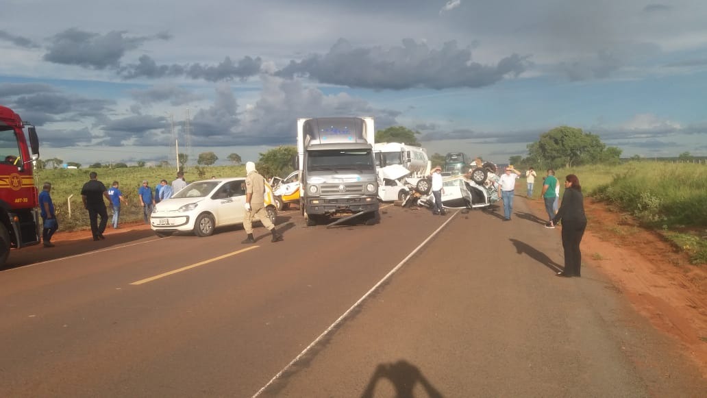 Por conta disso, alguns veículos diminuíram a velocidade para passar pelo trecho, enquanto outros mantiveram a velocidade e houve a colisão e engavetamento, entre sete veículos, sendo quatro de passeio, uma caminhonete, um caminhão e uma carreta.