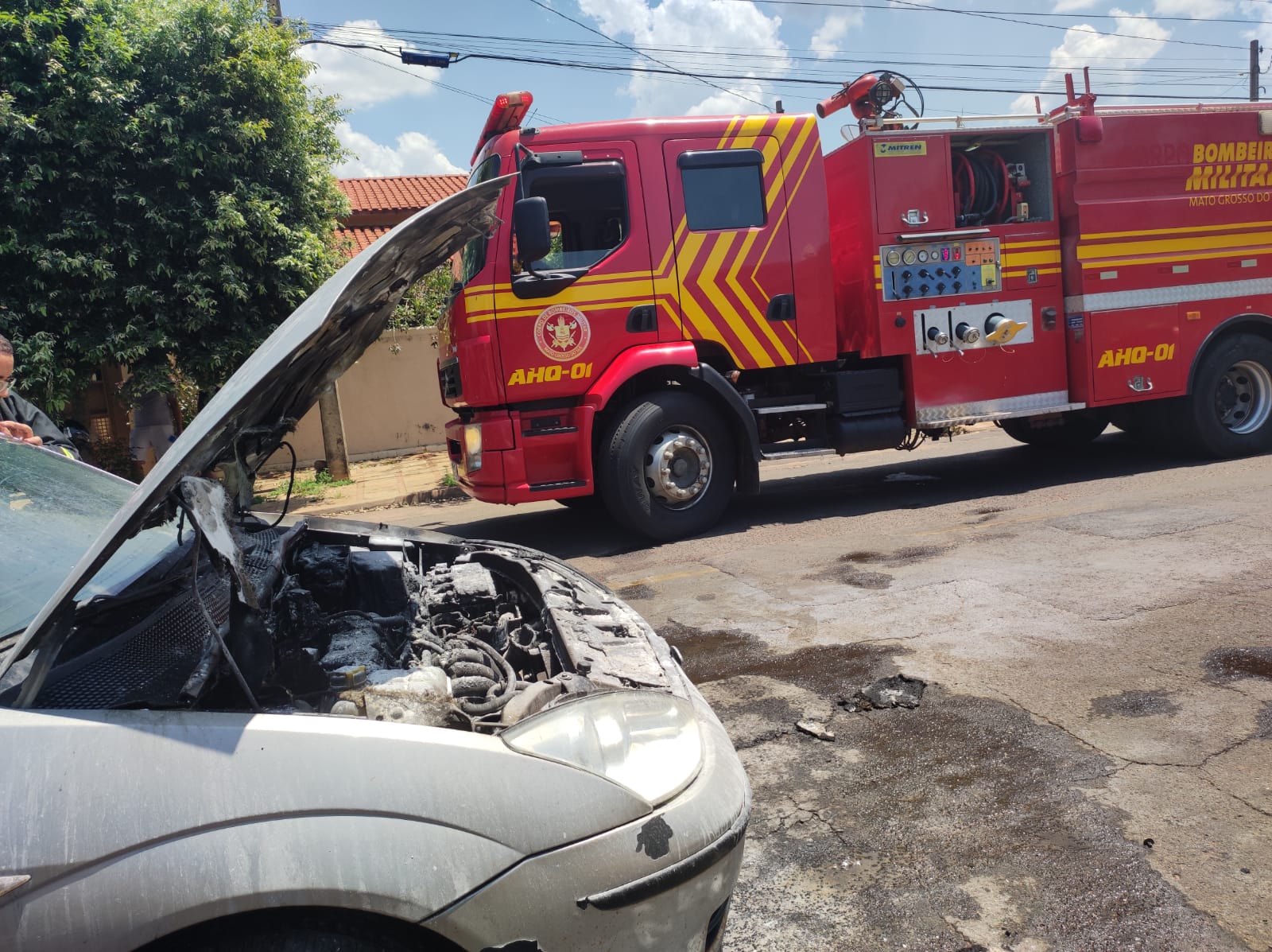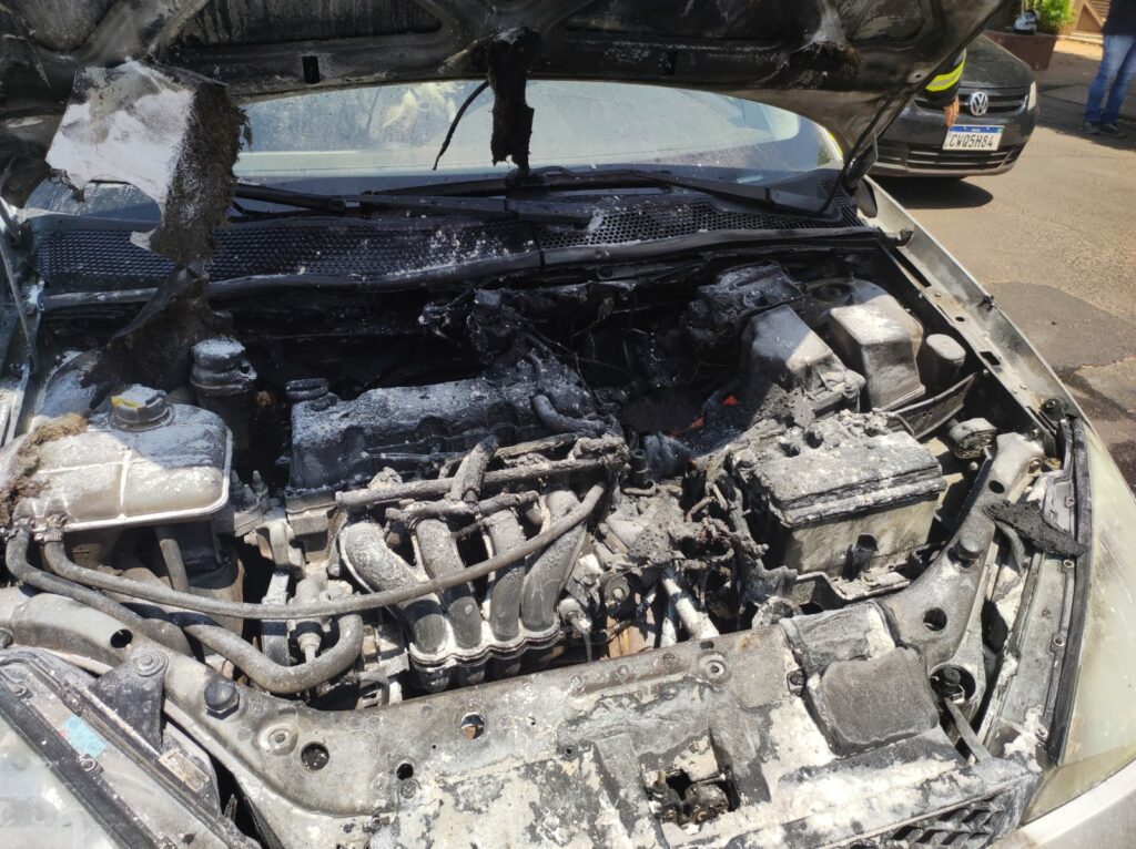 TRÊS LAGOAS (MS) – Na tarde desta segunda (14), um veículo sofreu um incêndio na Rua Manoel Ferreira da Rocha, no bairro Santo André. No local uma viatura e dois militares fizeram o trabalho de isolamento da área e combate as chamas, sendo gastos 100 litros de água para a extinção do incêndio.