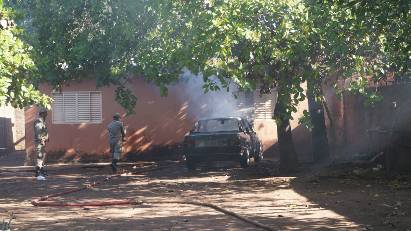 A reportagem da Rádio Caçula acompanhou o trabalho das equipes do Corpo de Bombeiros que em minutos extinguiram as chamas que consumiram e destruíram o carro.