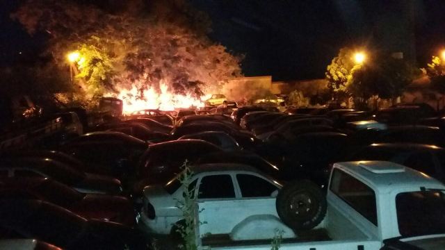 As chamas atingiram o local onde os veículos apreendidos pela polícia ficam parados e mais de 15 automóveis foram consumidos pelo fogo, que foi combatido por policiais militares e civis da cidade, pessoas voluntárias e brigadistas das indústrias de celulose.