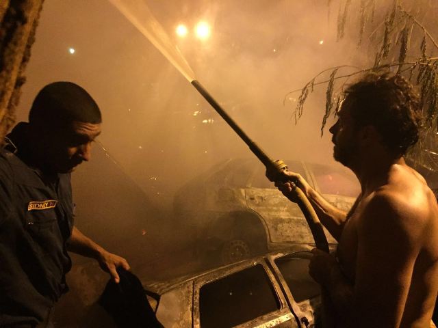A guarnição composta pelos Soldados Sidney, Alisson e Fabrício reuniram voluntários e em meio a fumaça, fogo, explosões e calor extremo, evitaram o aumento do incêndio, resfriando as paredes das residências e evitando que as chamas se alastrassem enquanto aguardavam a chegada do apoio.
