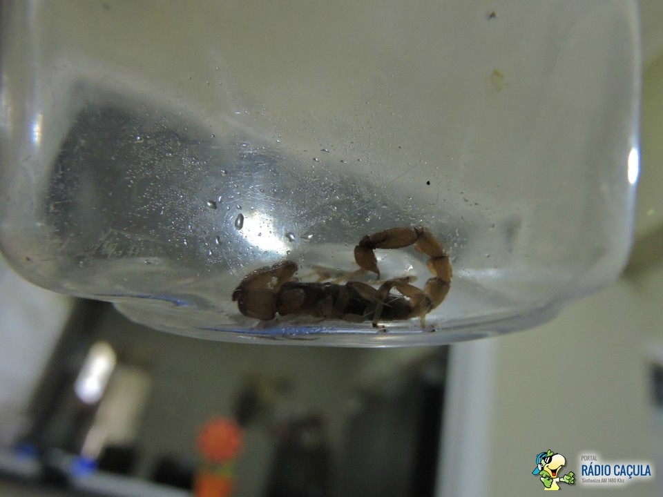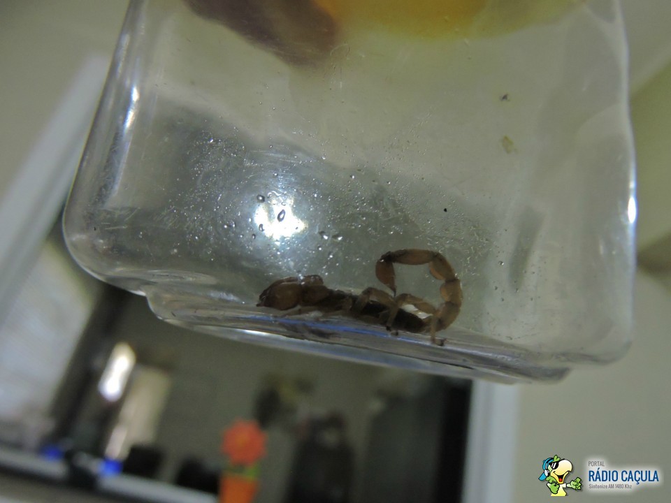 Um morador do bairro Santos Dumont 2 esteve nesta manhã (7) nos estúdios da Rádio Caçula trazendo um pequeno escorpião capturado em sua residência.