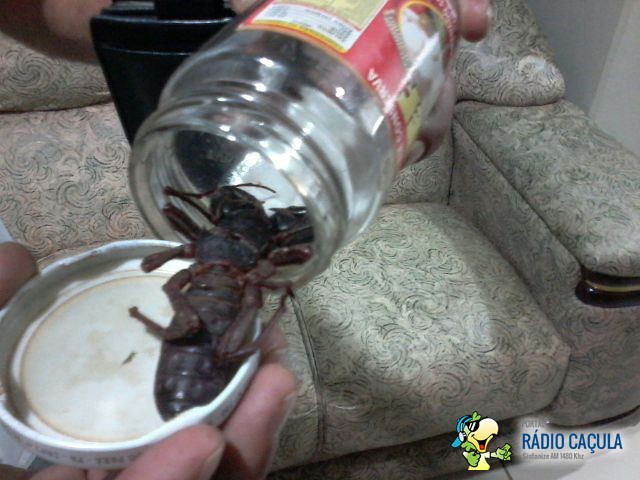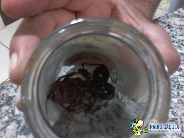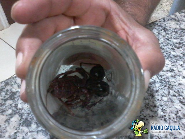 Na manhã desta quarta feira (18) uma moradora do bairro Jardim Alvorada esteve nos estúdios da Rádio Caçula onde trouxe em um recipiente um escorpião que entrou em sua residência.