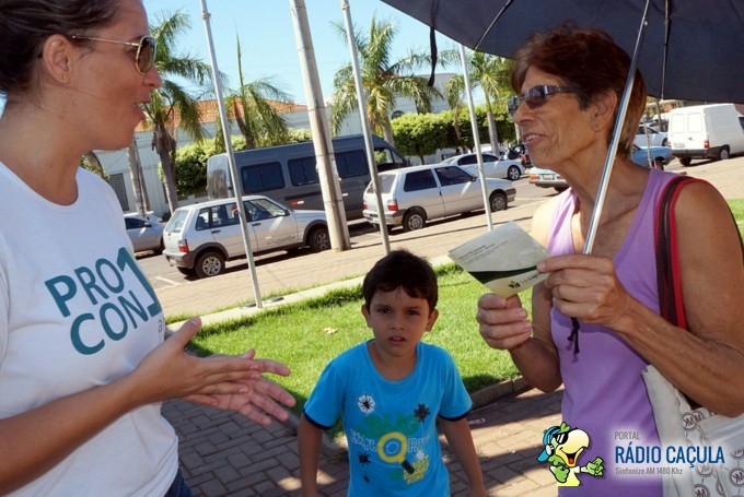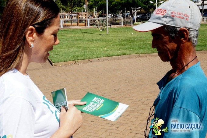 Profissionais e servidores do Procon estiveram na Praça Senador Ramez Tebet, no Centro, orientando e tirando dúvidas da população de Três Lagoas