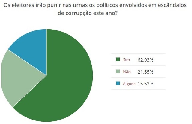 Outros 15% acreditam que apenas alguns dos políticos serão punidos pelos eleitores.